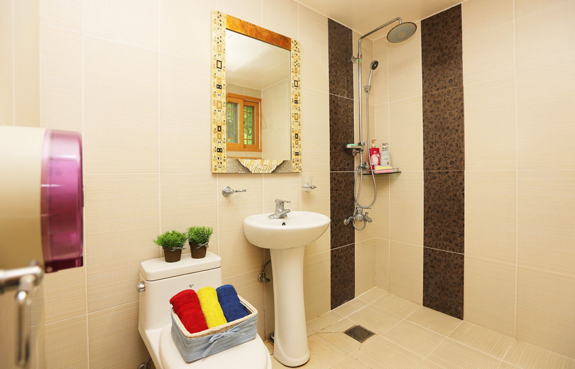 • 시설 : + TV, 침대(침구), 화장대, 냉장고, 에어컨, 화장실, 샤워부스, 드라이기, 전기쿡탑, 전기밥솥, 식탁 등