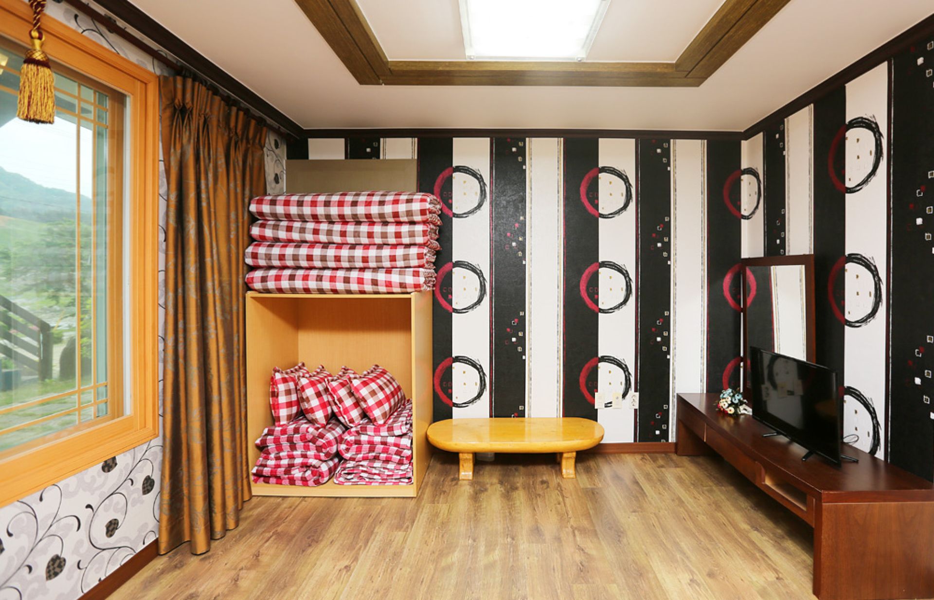 • 시설 : + TV, 침대(침구), 화장대, 냉장고, 에어컨, 화장실, 샤워부스, 드라이기, 전기쿡탑, 전기밥솥, 식탁 등