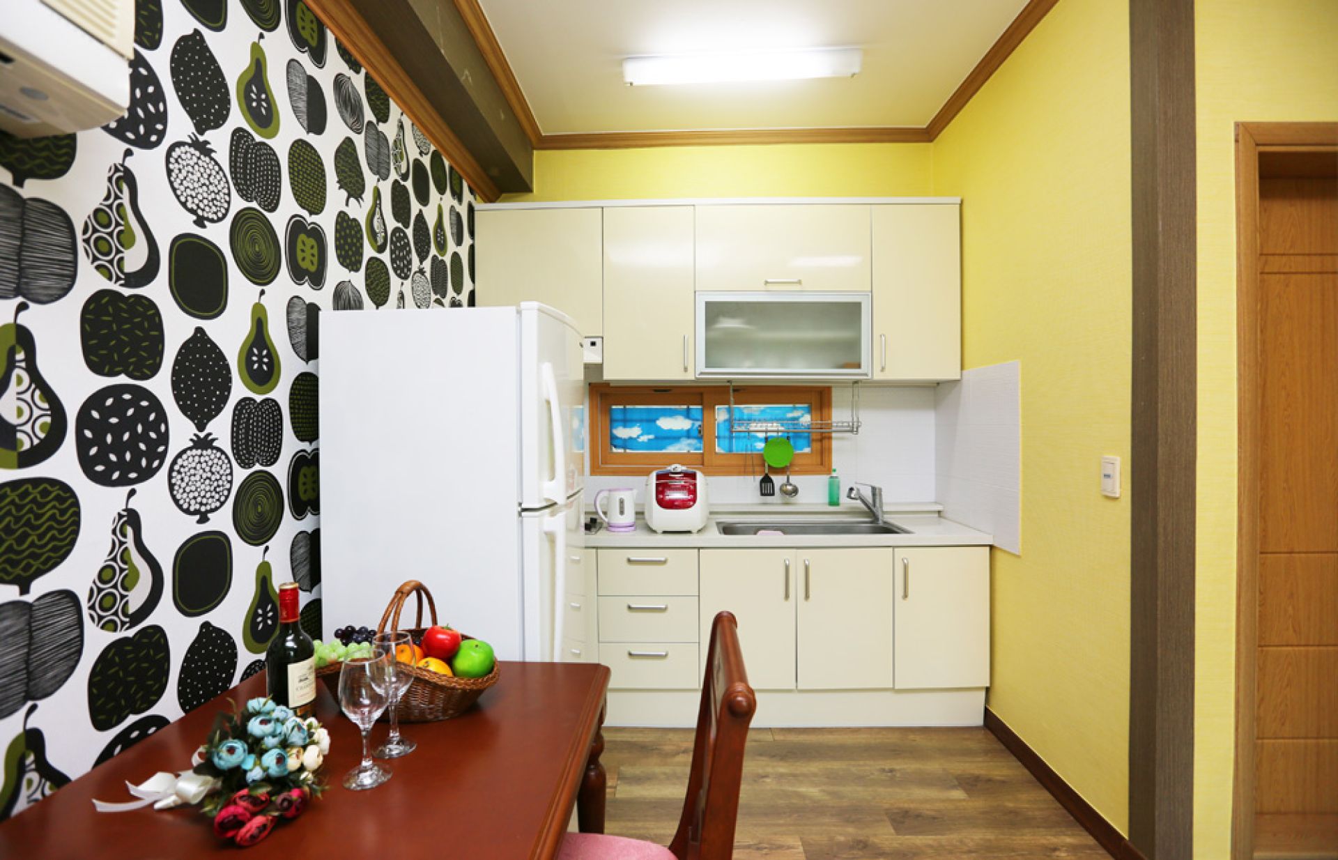 - 시설 : + TV, 침대(침구), 화장대, 냉장고, 에어컨, 화장실, 샤워부스, 드라이기,전기쿡탑, 전기밥솥, 식탁 등