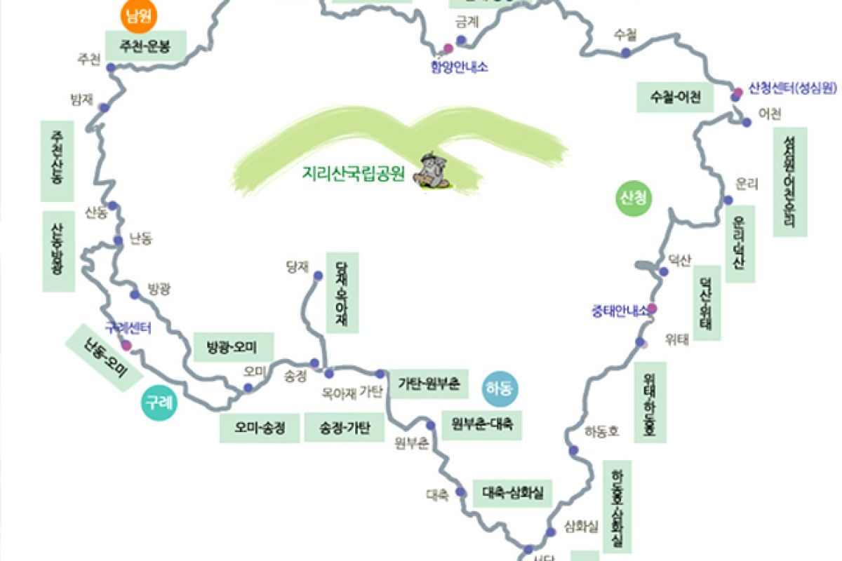 지리산둘레길은 800리(약300km)를 잇는 장거리 도보길입니다. 지리산을 감싸고 있는 3개도(전남,전북,경남), 5개시군(구례,남원,하동,산청,함양)100여개 마을의 지리산 옛길, 고갯길, 숲길, 강변길, 논둑길, 마을길 등을 이어 하나의 길로 연결하고 있습니다.